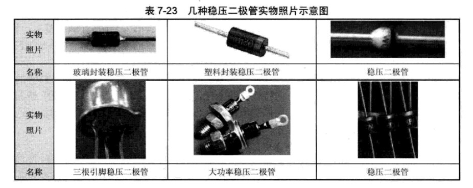如表7-23所示是幾種穩(wěn)壓二極管實物照片示意圖。