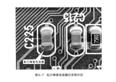 貼片陶瓷電容是應(yīng)用最多的一種電容,它的電路符號為"┤├”,在電路中,這種電容器的代號為"C”,貼片陶瓷電容器的實物外觀見圖5-7。